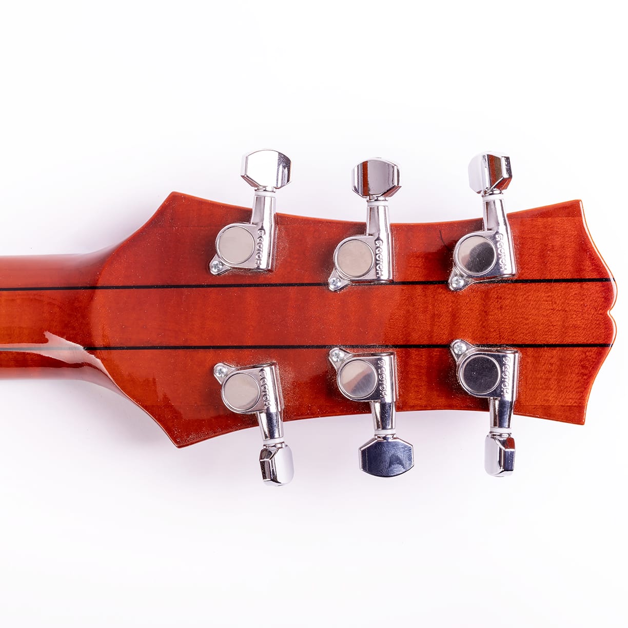 Griffbrett, Saitenhalter, Brücke und freischwebendes Schlagbrett aus Ebenholz.