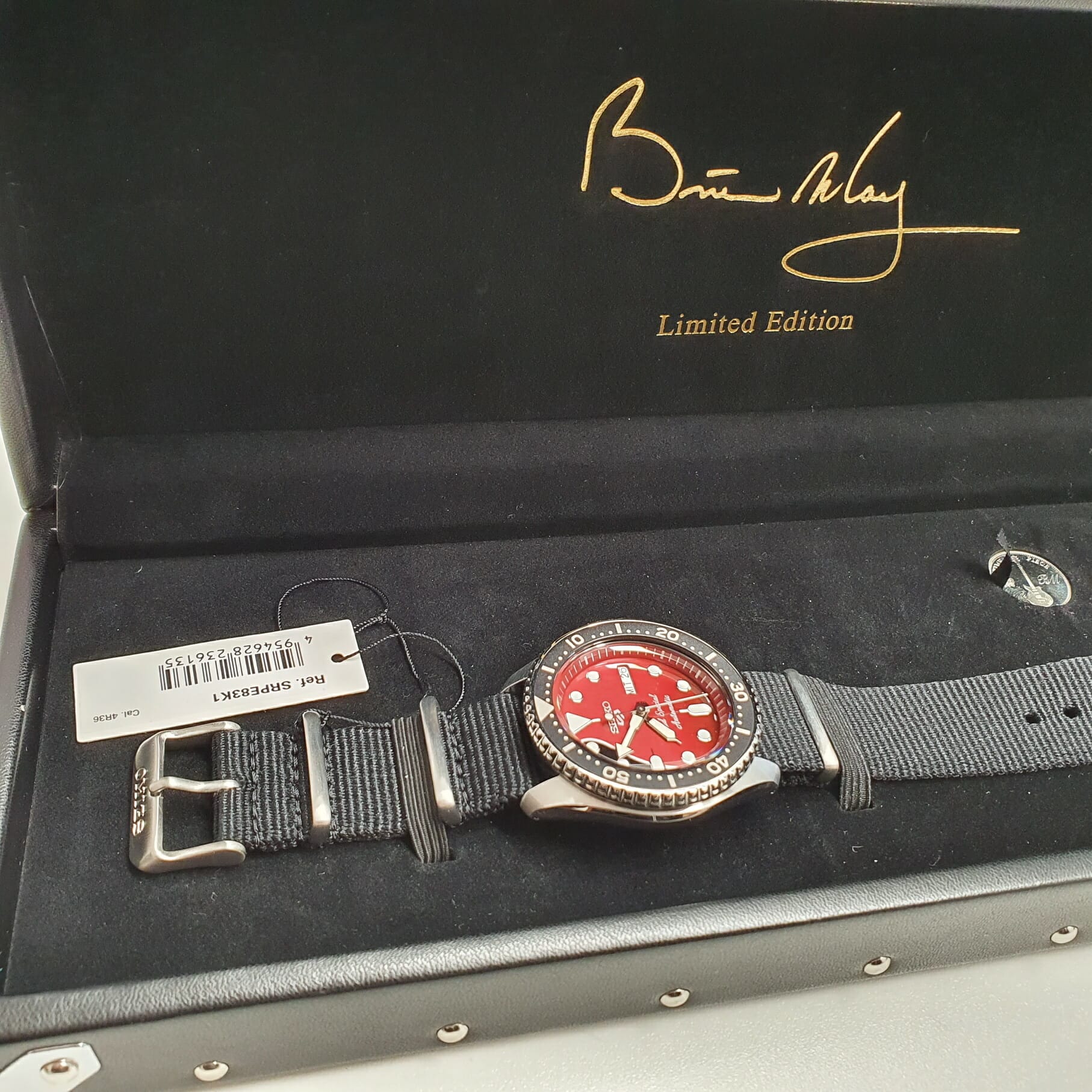 Die „Red Special“ Gitarre inspirierte jetzt zu einer neuen Seiko 5 Sports, deren Zifferblatt das Design der Gitarre widerspiegelt, die Brian zusammen mit seinem Vater in den frühen 1960er Jahren gebaut hat.