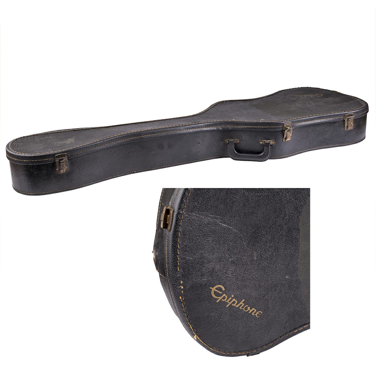 Wir bieten hier diese supercool aussehende SC350 von Epiphone an. Diese Serie wurde nur drei Jahre in den späten 70ern hergestellt. Sie besteht aus einem massiven Ahornkorpus mit Scroll-Basshorn und ist mit einem Paar mörderisch klingenden Humbuckern bestückt. Sie wurde professionell inspiziert, gewartet und mit frischen Saiten bestückt. Sie sieht klasse aus, klingt hervorragend und lässt sich super spielen.