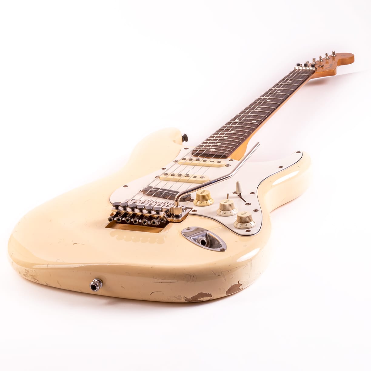 Sie ist technisch in sehr gutem Zustand. Der Hals wurde eingestellt und die Bünde teilweise erneuert. Weiterhin bekam sie ein originales Floyd Rose eingebaut.