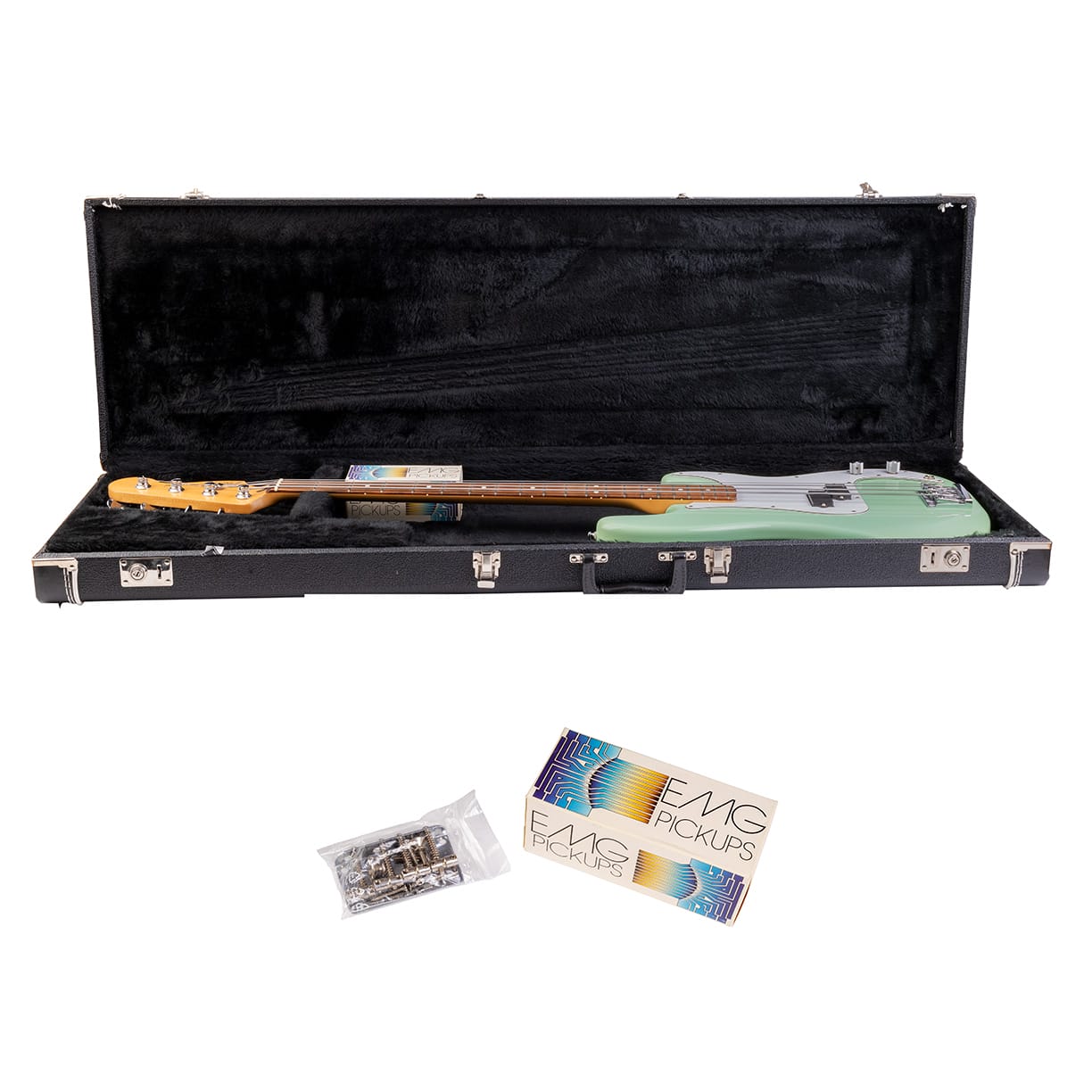 Wir bieten hier einen Fender Precision Bass von 1993 Made in Mexico in super Zustand an. Der Bass wurde mit EMG -Prec. Pick Ups und einer Schaller 3D-4 Bass Bridge ausgestattet. (Die Originalteile gibt es dazu). 2013 wurde das Instrument von einem bekannten Veredler in der Farbe Surf Green (original Fender) lackiert.