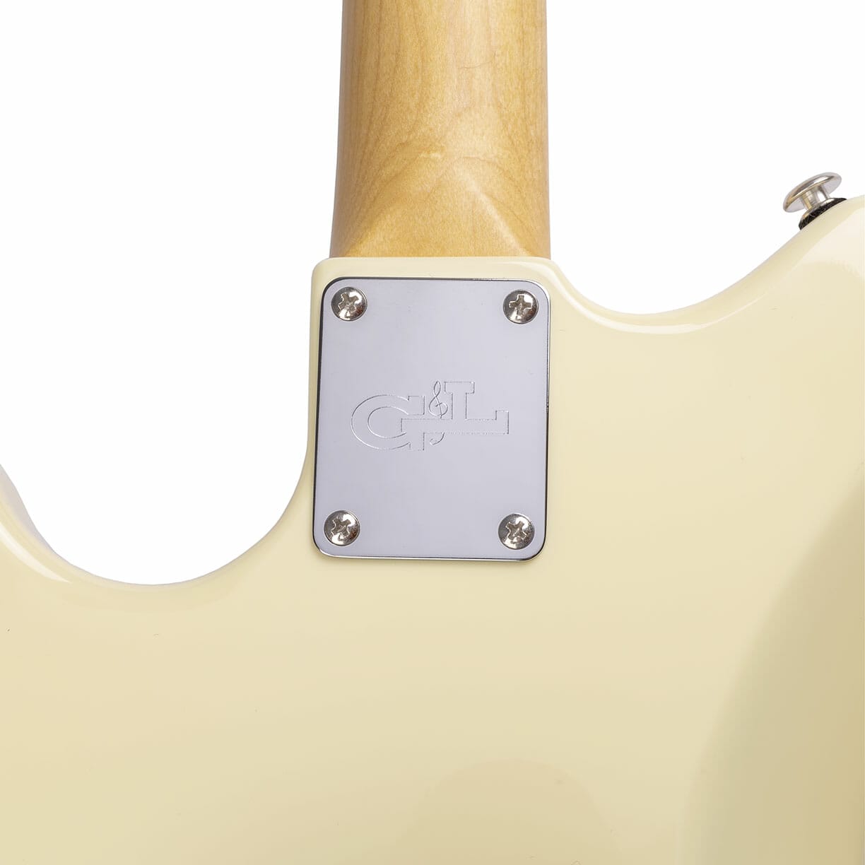 Wir bieten hier eine brandneue E- Gitarre von G&L Fullerton USA aus der Deluxe Serie an. Diese Fallout in der Farbe Vintage White kommt im Swamp Ash Korpus, Ahornhals mit Slim C Profil und Ahorngriffbrett Griffbrett daher.
