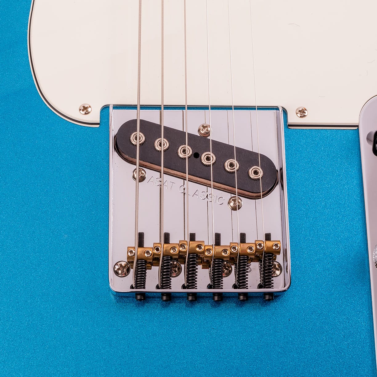 - Bridge/Tremolo: G & L traditional boxed-steel bridge with individual brass saddles