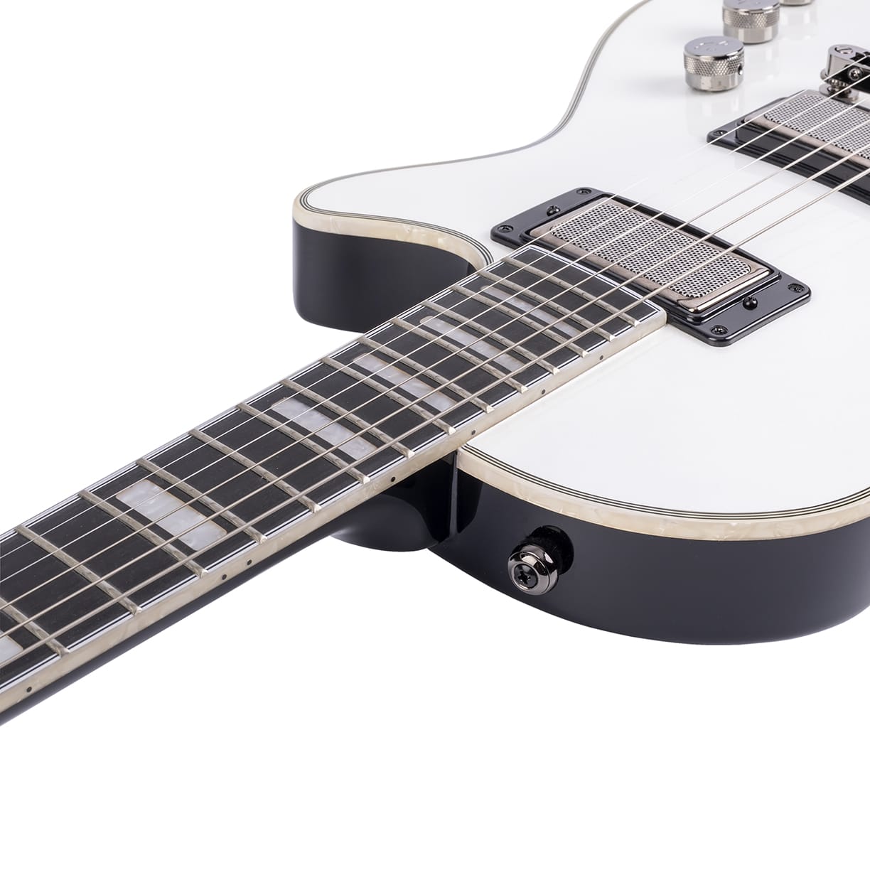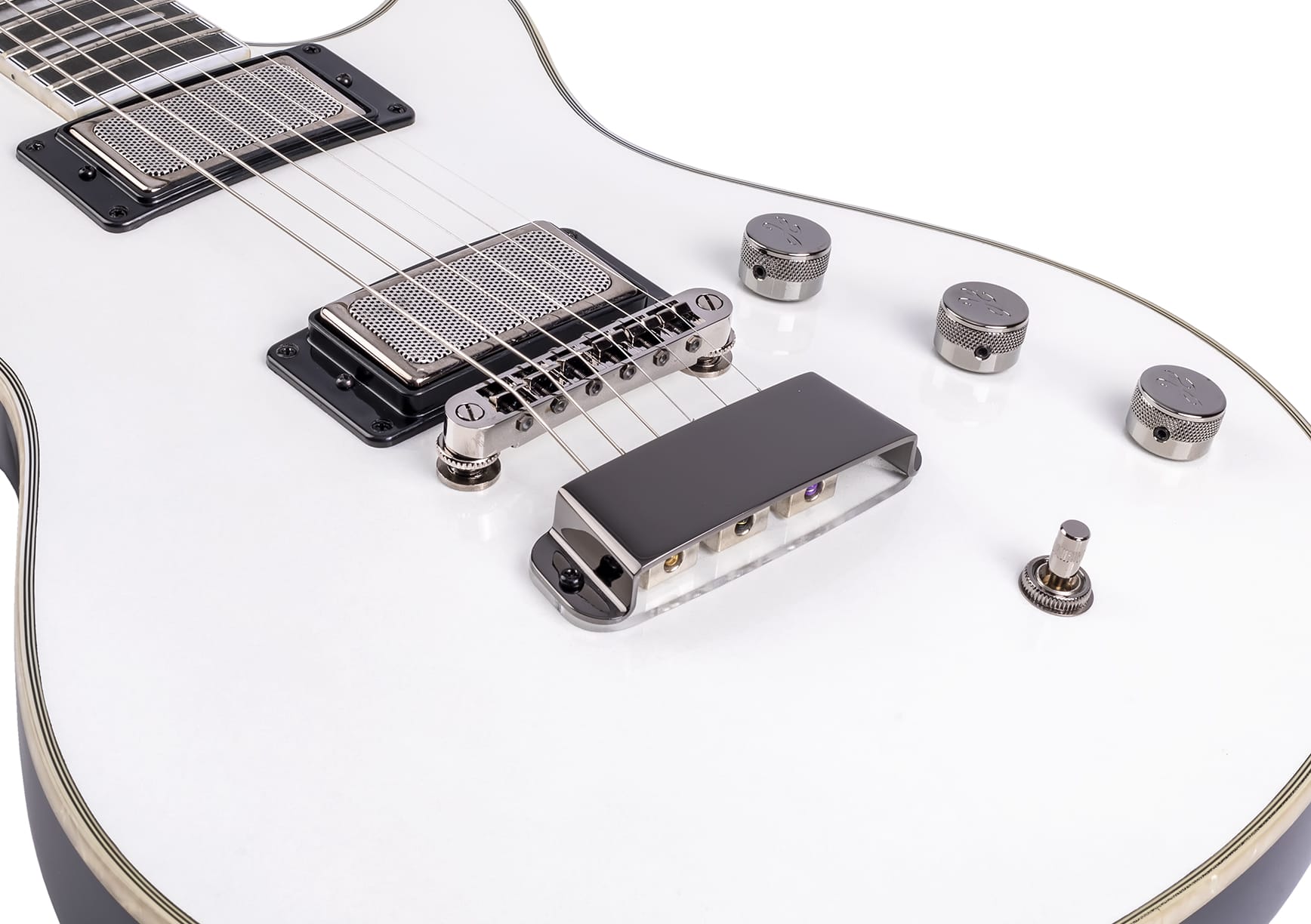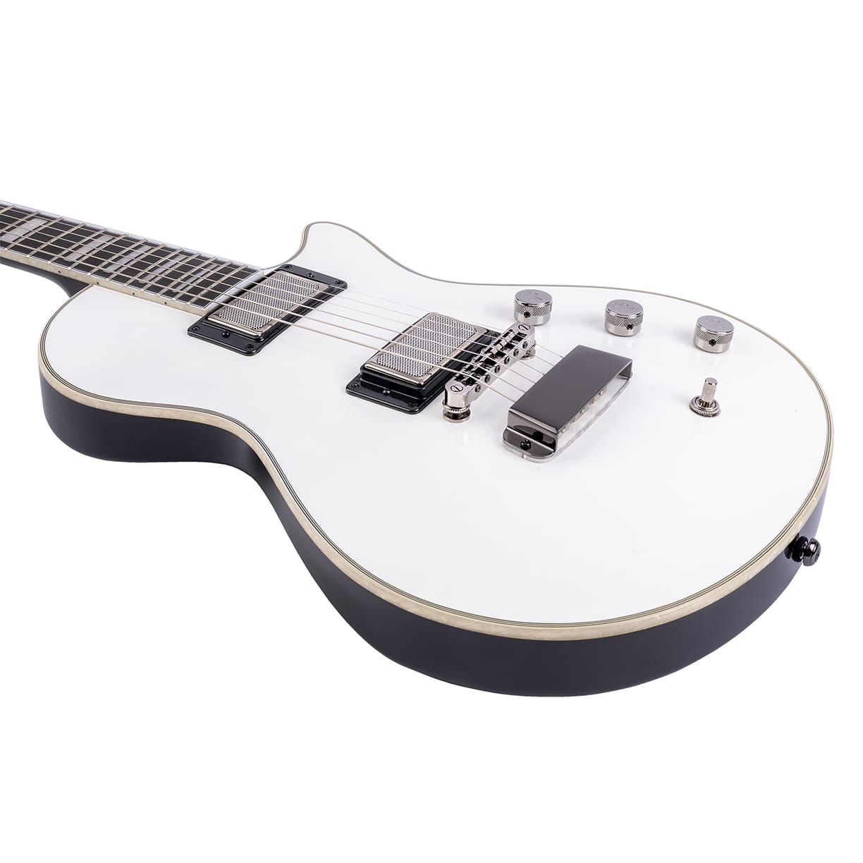 - Regler: Steg PU Volume, Hals PU Volume, Master Tone mit globaler Coilsplit Option (Push/Pull) die beide Humbucker auf SC Modus umschaltet