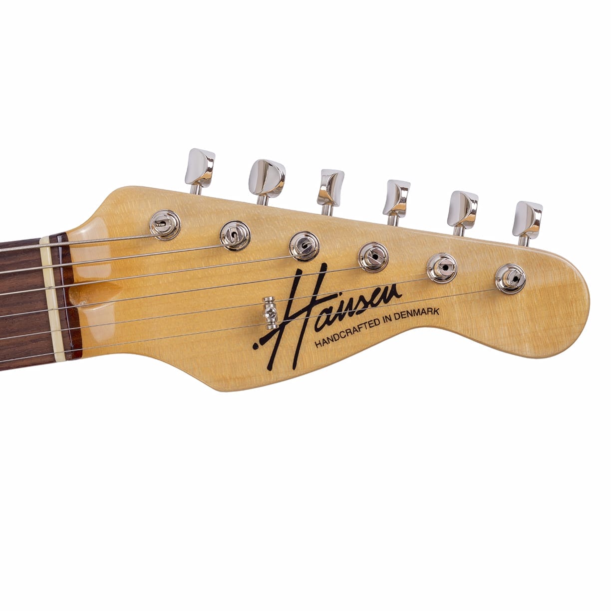 Wir bieten hier eine handgebaute S-Style Gitarre von Henning Hansen aus Dänemark an. Jedes Hansen-Instrument wird ohne die Hilfe von Computern, Fließbändern oder Tricks gebaut, alles wird so gemacht, wie es war, “als der Rock noch jung war”.