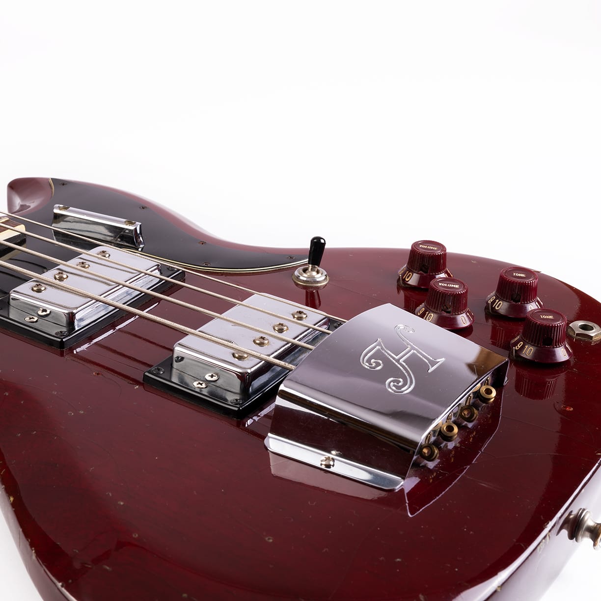 Wir bieten hier einen Hoyer 5045 Bass (? oder SG ?) in weinrot an. Ich kann nicht mit Sicherheit sagen, um welches Modell es sich handelt, im Netz findet man ähnliche Instrumente. Bei diesem Bass ist der Hals angeschraubt. Das Instrument wurde Anfang der 70er in Deutschland gebaut.