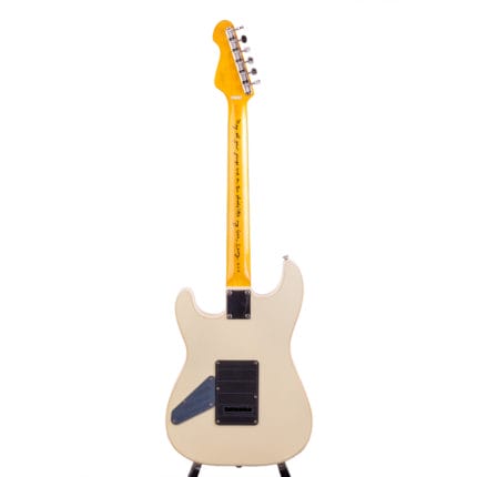 - Ein Lautstärke- und zwei Klangregler mit einem 5-Positionen-Switch befestigt auf einem maßgeschneiderten finnenförmigen Pick Guard. Oh yeah, siehst du es jetzt?