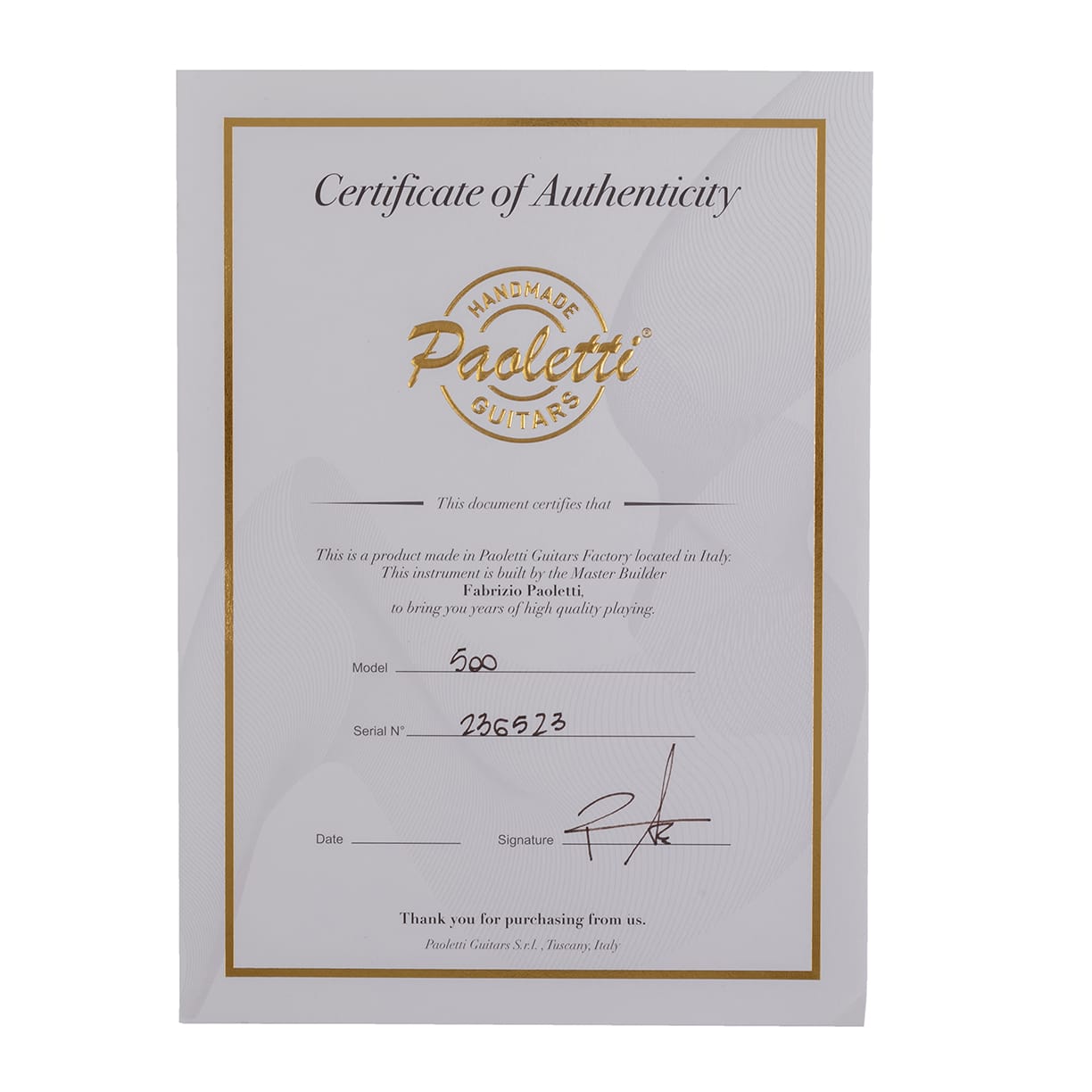 MISC: Certificate of Warranty & Authenticity