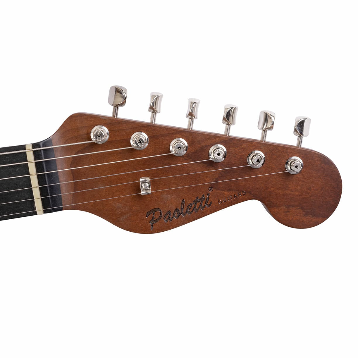 Bei diesem Modell hat sich Herr Paoletti für einen Single Coil Paoletti – 7,50K Pickup am Neck und in der Mitte entschieden. An der Bridge Position arbeitet ein Humbucker Rock – 8,1K. CRL-Schalter und CTS-Potis sorgen für eine genaue Auswahl Ihres gewünschten Klangs.