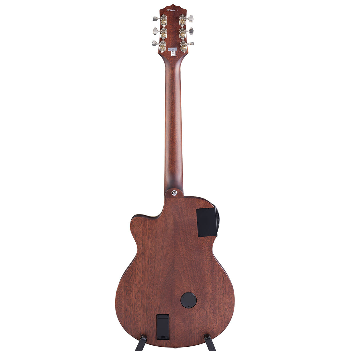 Wir bieten hier eine Stahlsaitengitarre im Concert Style mit niedriger Korpustiefe, Tonabnehmer und Cutaway an. Die JM-CA 44 ist ein vollmassive Instrument mit einer Sattelbreite von 43 mm. Sie ist mit massiver Fichtendecke sowie massivem Mahagoniboden und Zargen ausgestattet. Das umfangreiche Tonabnehmersystem bietet neben der Klangregelung Anschlüsse für externe Abspielgeräte sowie für Kopfhörer.