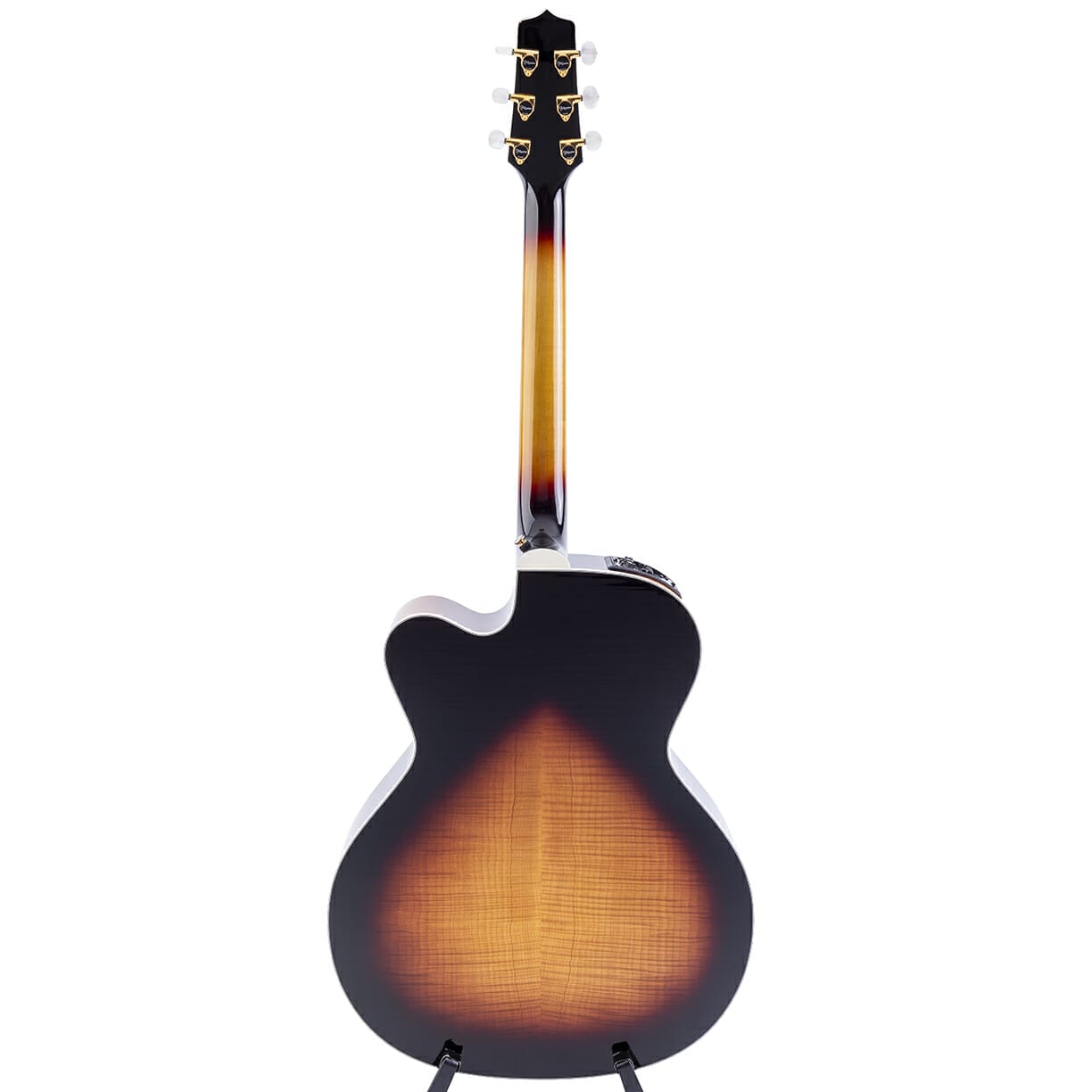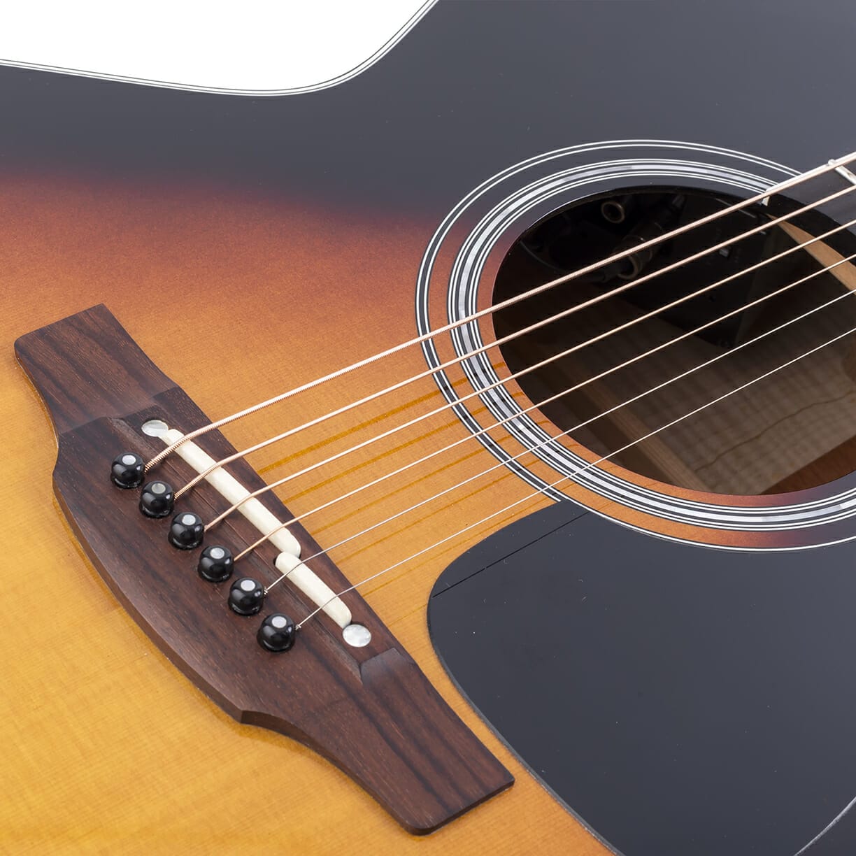 Wir bieten hier eine komplett handgefertigte Westerngitarre aus der Pro-Serie von Takamine. Dass dieses Instrument von den Gitarrenbauern von Takamine mit viel Liebe fürs Detail gefertigt wurde, sieht man sofort.
