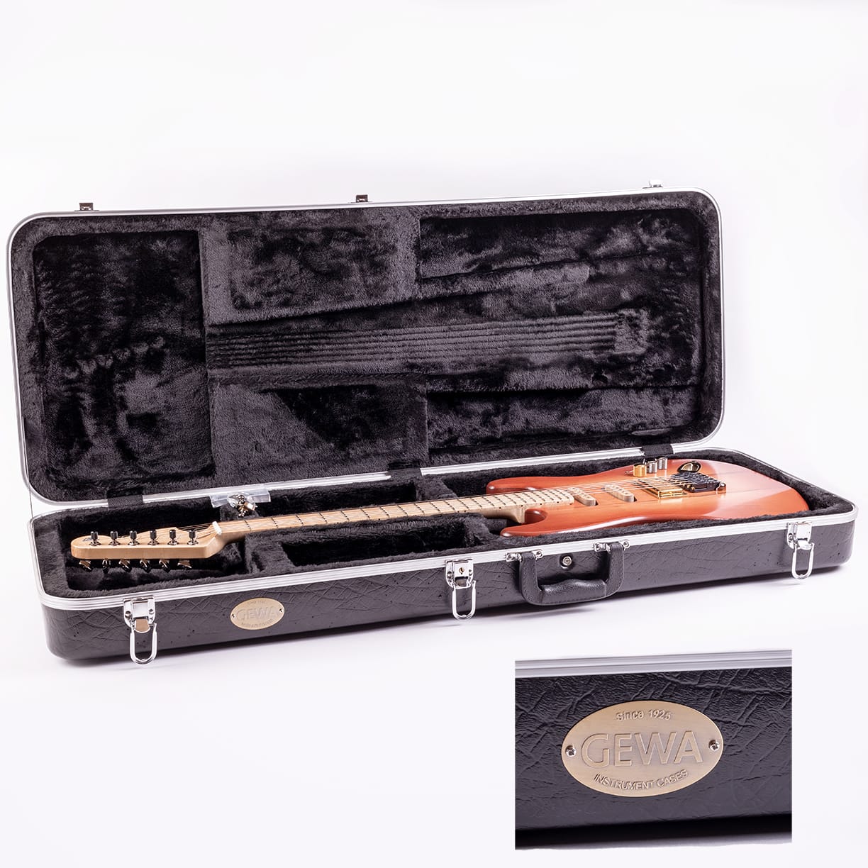 Farbe: Ruthenium/Gold, Bridge Schaller Hannes, Mechaniken: Schaller Locking, Schaller Security Locks, Sattel: Knochen, Potiknöpfe „Dome Speed“