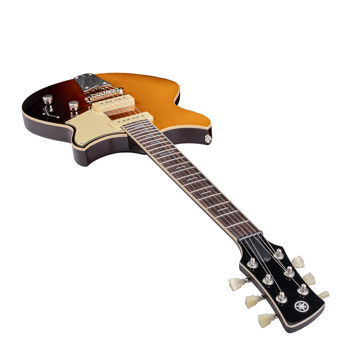 Wir bieten hier eine YAMAHA Revstar RSP02T in Sunset Burst an. Bei dieser in Japan gefertigten Revstar setzt Yamaha auf einen gekammerten Korpus aus afrikanischem Mahagoni mit Carbonverstärkung, bedeckt von einer massiven Ahorndecke. Die Karbonstäbe im Hals und Korpus verbessern die Schwingungsübertragung. Die RSP02T ist mit P90-Tonabnehmern ausgestattet. Alle Tonabnehmer wurden speziell von Yamaha entwickelt und nutzen Alnico V-Magnete für einen kraftvollen Klang und machen das Instrument zu einem hervorragenden Werkzeug für jeden Musiker.